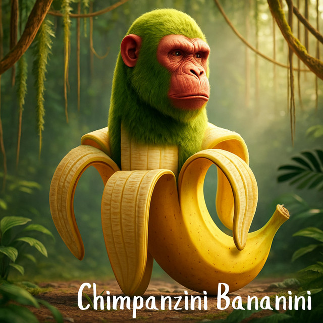 According to the lore, Chimpanzini was originally an ordinary monkey who, while eating a banana during a thunderstorm, was struck by lightning. In a flash, his body transformed into a giant banana, leaving his head unchanged. Now, his family wants to eat him because he smells so delicious.